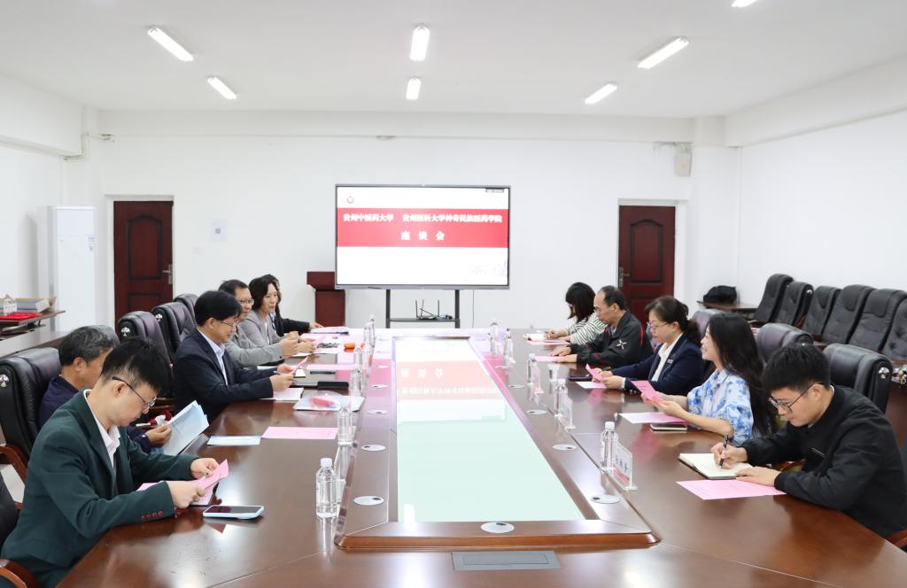 学校党委副书记明雪梅,贵州医科大学神奇民族医药学院党委书记杨国强、党委副书记夏宇波、副院长周华,以及双方组织部、马克思主义学院相关同志参加了签约仪式并座谈。会议由学校马院党总支书记韦伟主持。