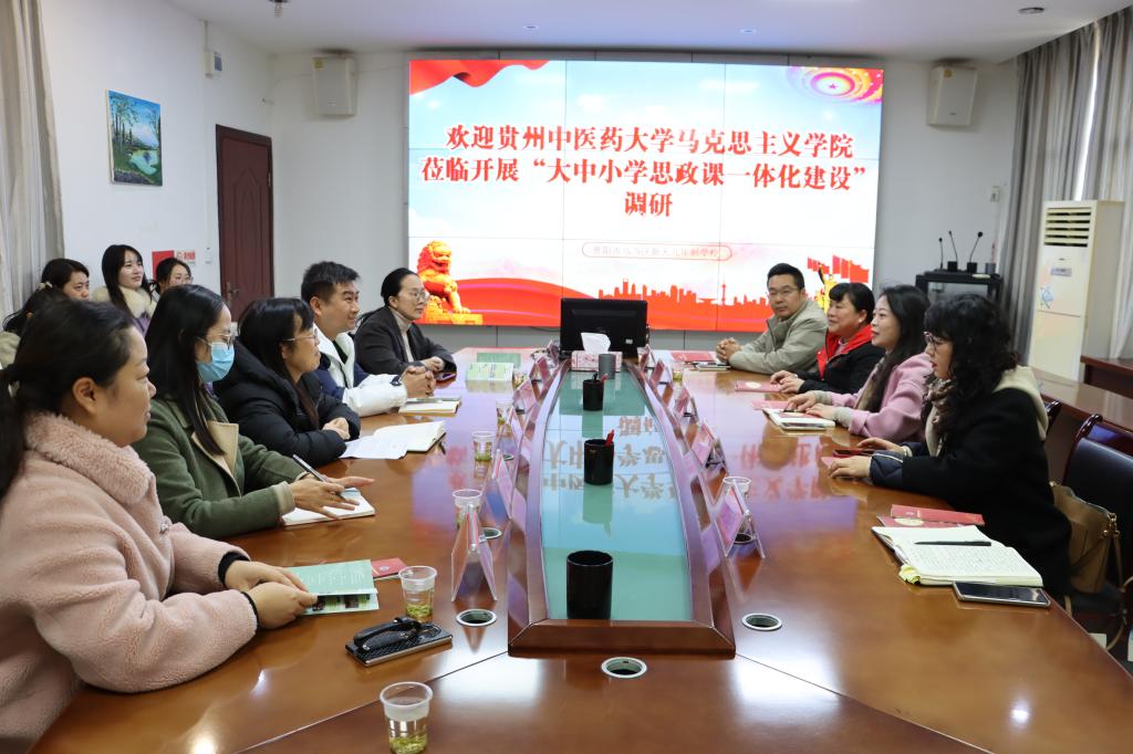为进一步推动大中小学思政课一体化建设走深走实,11月27日上午,马克思主义学院党总支书记韦伟率学院思政课骨干教师一行5人赴乌当区新天九年制学校开展大中小学思政课一体化建设调研座谈。调研会由新天九年制学校校长张鼎主持。