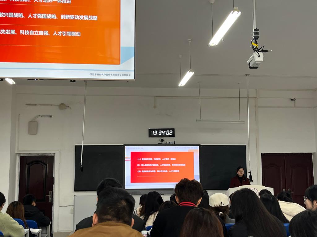 授课中,周英指出,加快建设教育、科技和人才强国是铸就强国建设的坚实基础。她深刻阐述了建设“教育强国”、“科技强国”和“人才强国”三者之间辩证关系。她强调,同学们要将个人成长与国家、学校的发展紧密相连,在日常的学习生活中树立崇高理想、练就过硬本领、坚持脚踏实地,以青春之我、奋斗之我切实肩负起中医学子担当,在推进强国建设、民族复兴伟业中展现青春作为、彰显青春风采、贡献青春力量,成长为能够担当起时代使命、助力社会发展和强国建设的有为青年。