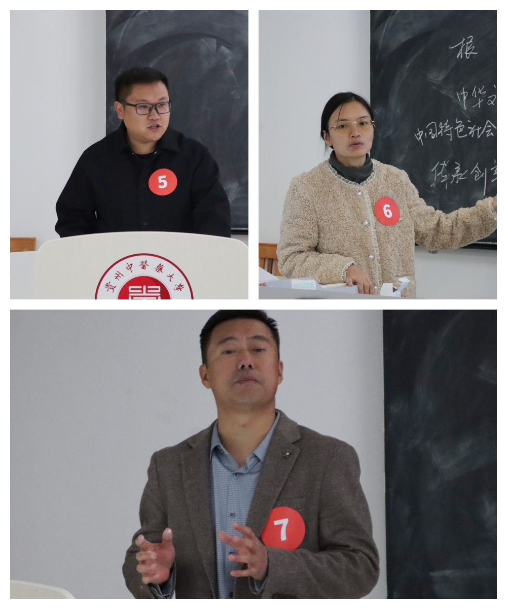 来自我院的武晓丽、武小存、唐春芳、王伟、蒲承军、越娇娇以及贵州医科大学神奇学院马克思主义学院覃礼星等七位老师同台竞技。此次比赛聚焦教学内容、方法、效果和反思等多个维度进行综合考核。大赛现场,参赛青年教师们以饱满的热情、多样的教学方式,各展所长、亮点纷呈,在赛场上展现了思政课教师扎实的教学功底和教学风采。